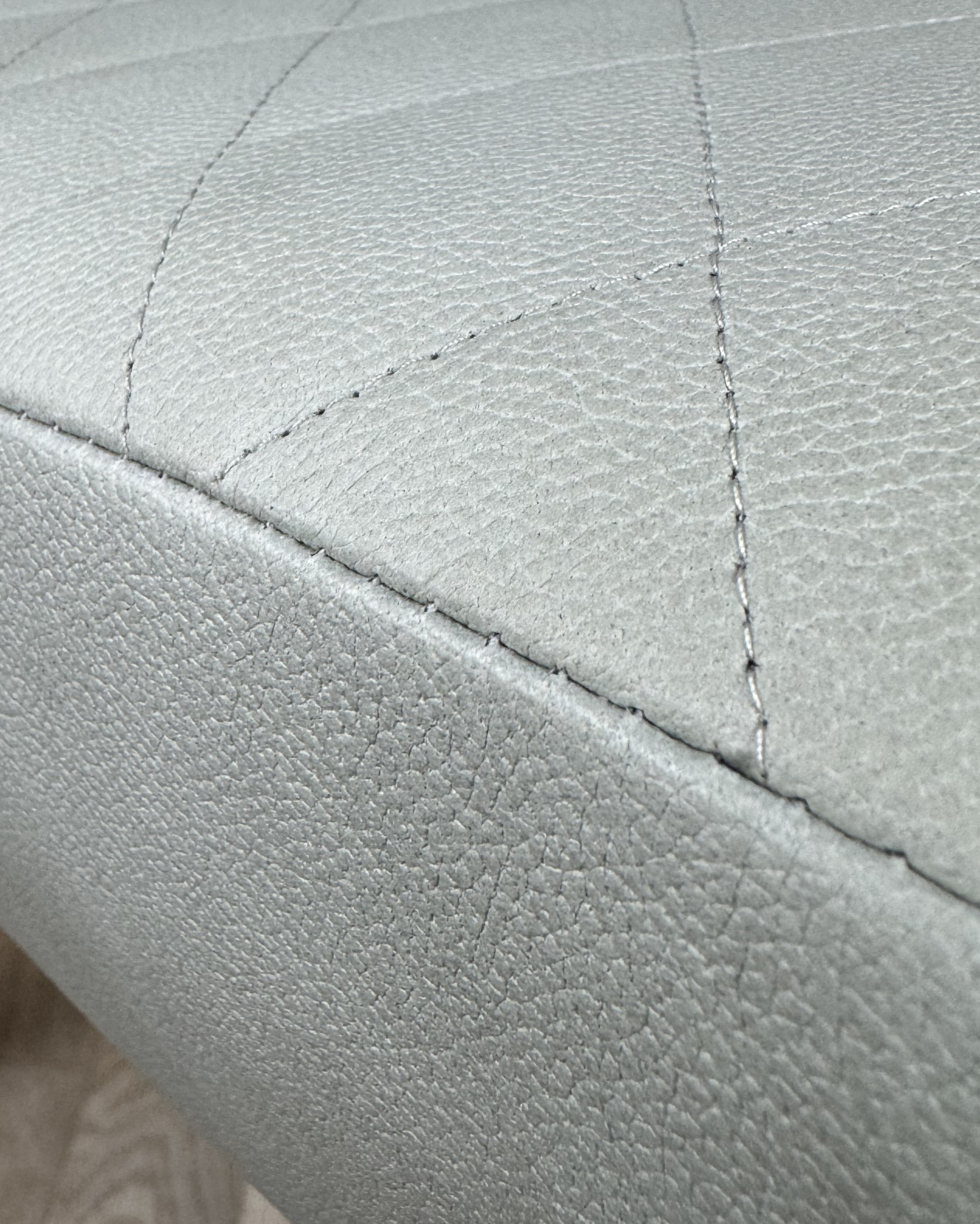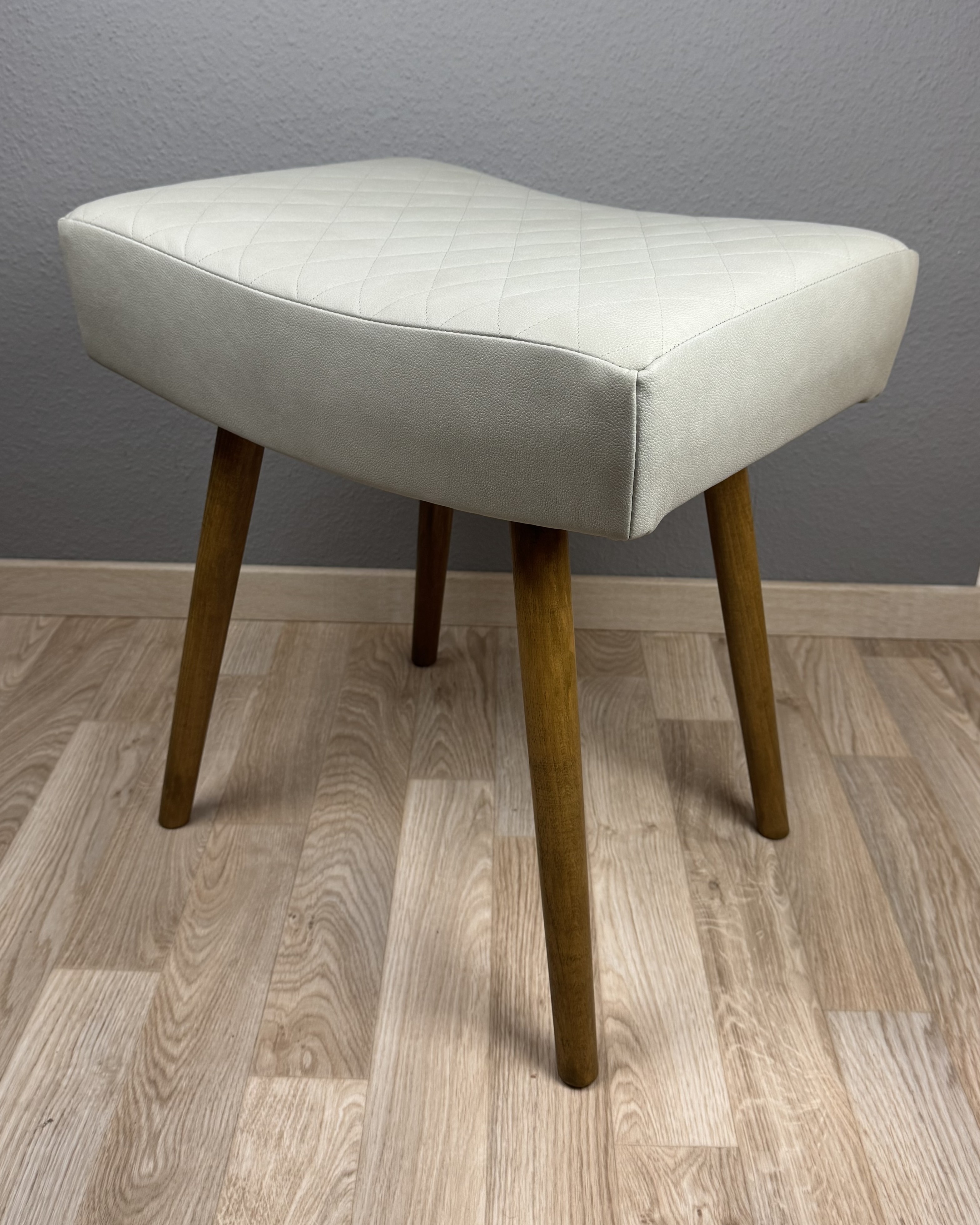 Maße ca.: Sitzhöhe 49 cm/ Breite 48 cm/ Länge-Tiefe 36 cm Bezugsmaterial: Microfaser in Lederoptik, 100% Polyester, 100.000 Scheuertouren Farbe: Hellgrau Gepolstert mit Schaumstoff RG 35/50, Polstergrund aus Jutegurten mit Jutegewebe Gestell aus Buchenholz